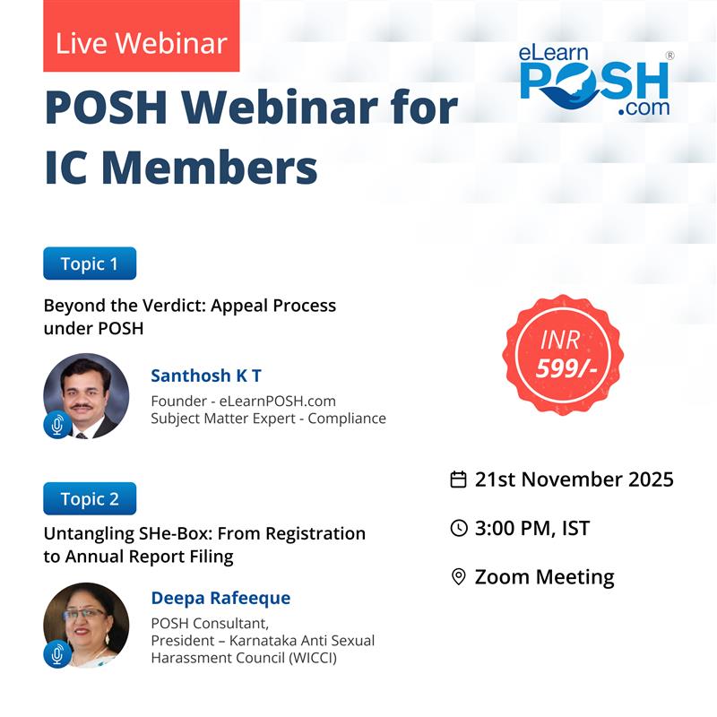 Go beyond mere POSH Compliance with our combination of on-demand POSH eLearning, Periodic POSH webinars and POSH tools for IC Members.